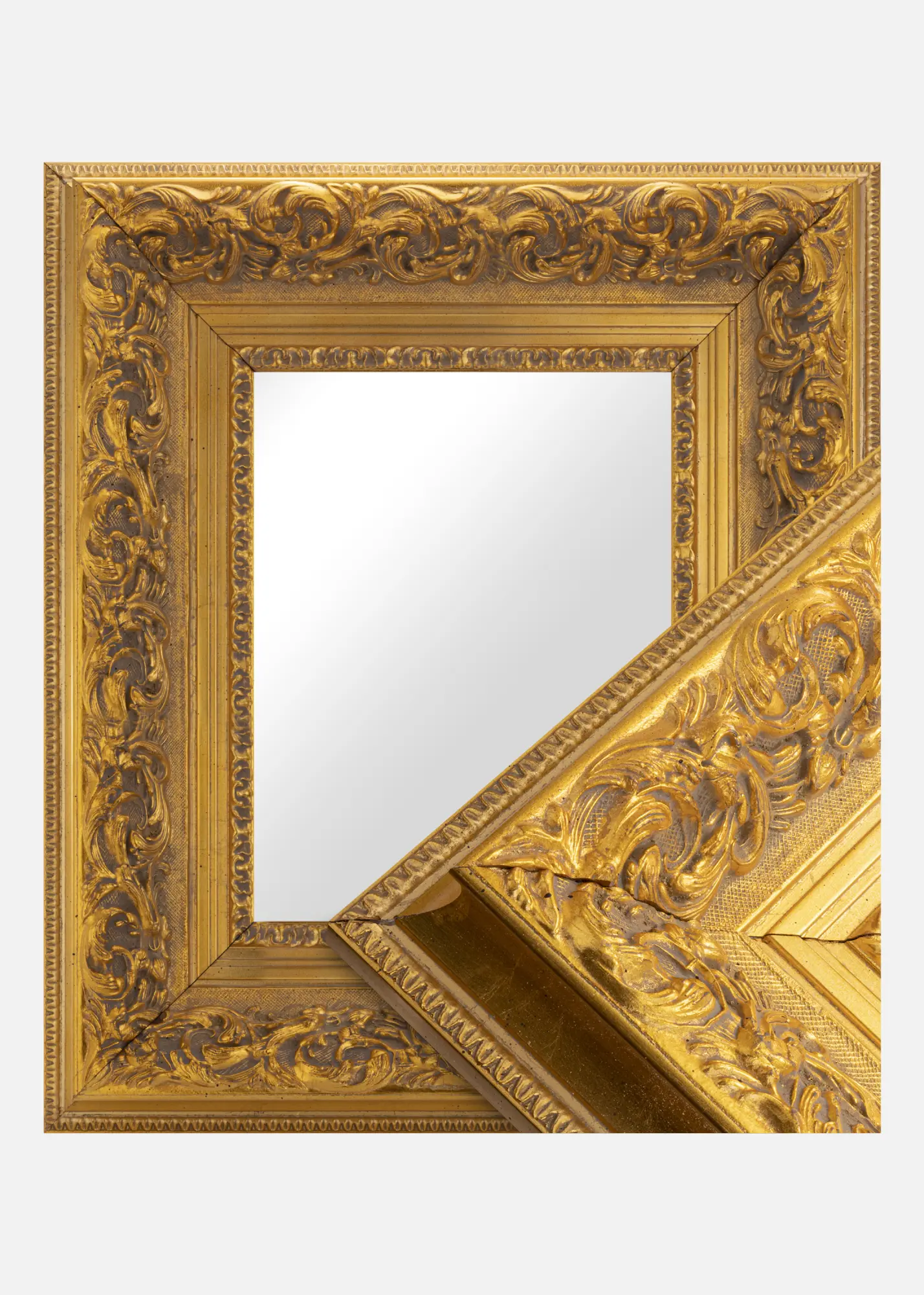 Miroir Birmingham Or est un miroir sur mesure fabriqué par nos soins, vous offrant la possibilité de l'obtenir exactement aux dimensions souhaitées. Avec sa teinte dorée profonde et son design baroque classique, ce miroir devient un détail saisissant dans votre maison. Le cadre de 152 mm de large est orné de motifs ornés et de dessins de feuilles sculptées, ce qui crée une expression élégante et intemporelle.