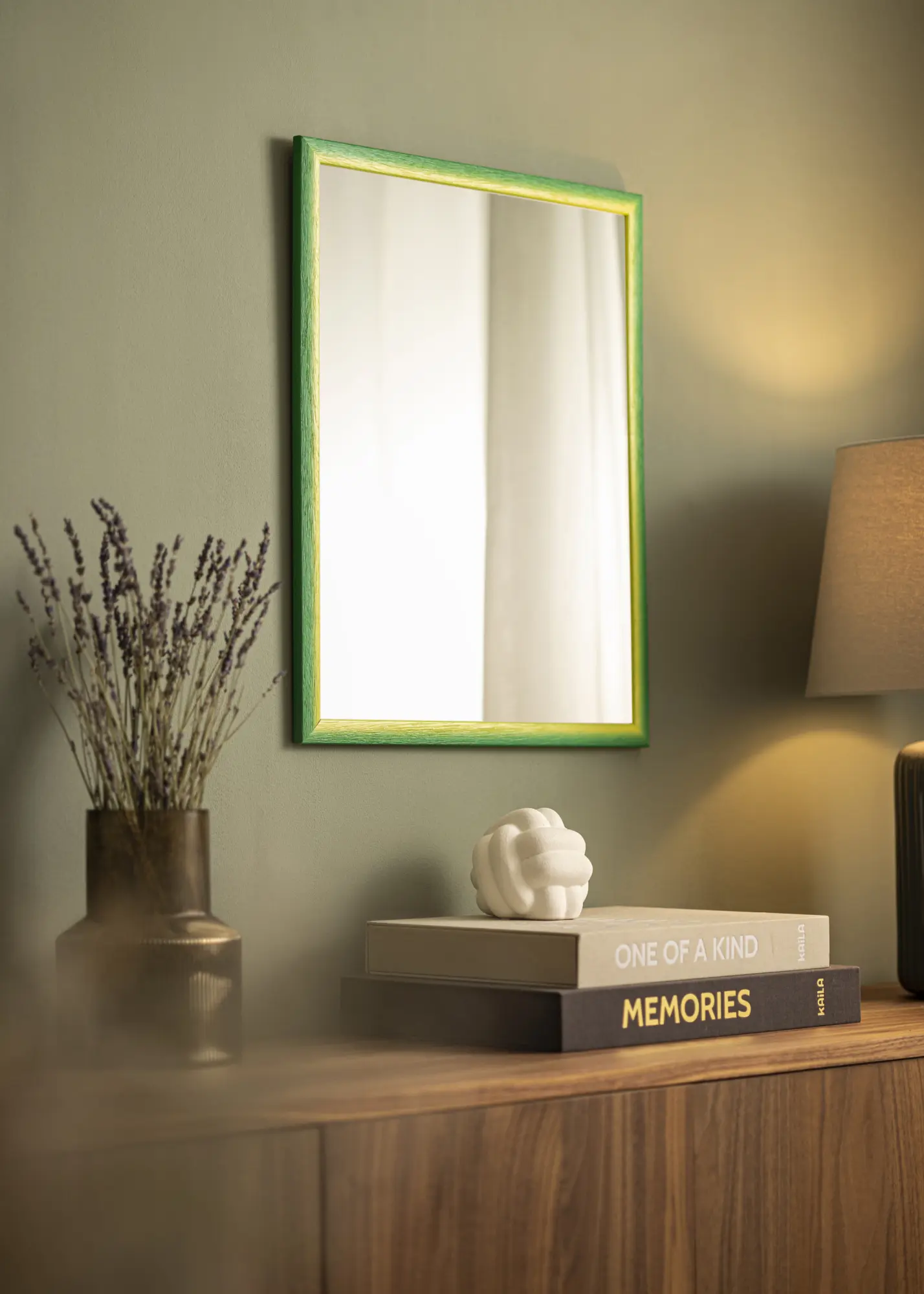 Le profil étroit et la finition mate renforcent le caractère moderne du miroir tout en conservant un charme rustique. Miroir Cornwall Vert s'adapte parfaitement à différents styles d'intérieur, du minimaliste au plus traditionnel. Que vous le placiez dans le couloir, la chambre ou le salon, il deviendra un point focal qui rehausse toute la pièce.