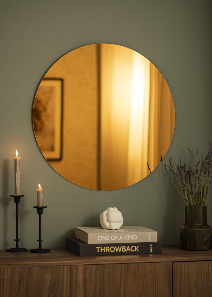 Vous désirez créer une atmosphère plus luxueuse dans la chambre à coucher, le salon ou bien le hall d'entrée ? Alors vous devriez agrémenter le mur avec ce miroir rond ! Ce miroir mural a un verre miroir dans une teinte bronze avec une nuance dorée, ce qui donne une impression très exclusive. Cette sensation luxueuse est renforcée par son design minimaliste, avec un verre miroir mince et des bords sans cadre. Ce miroir mural mesure 70 cm de diamètre.