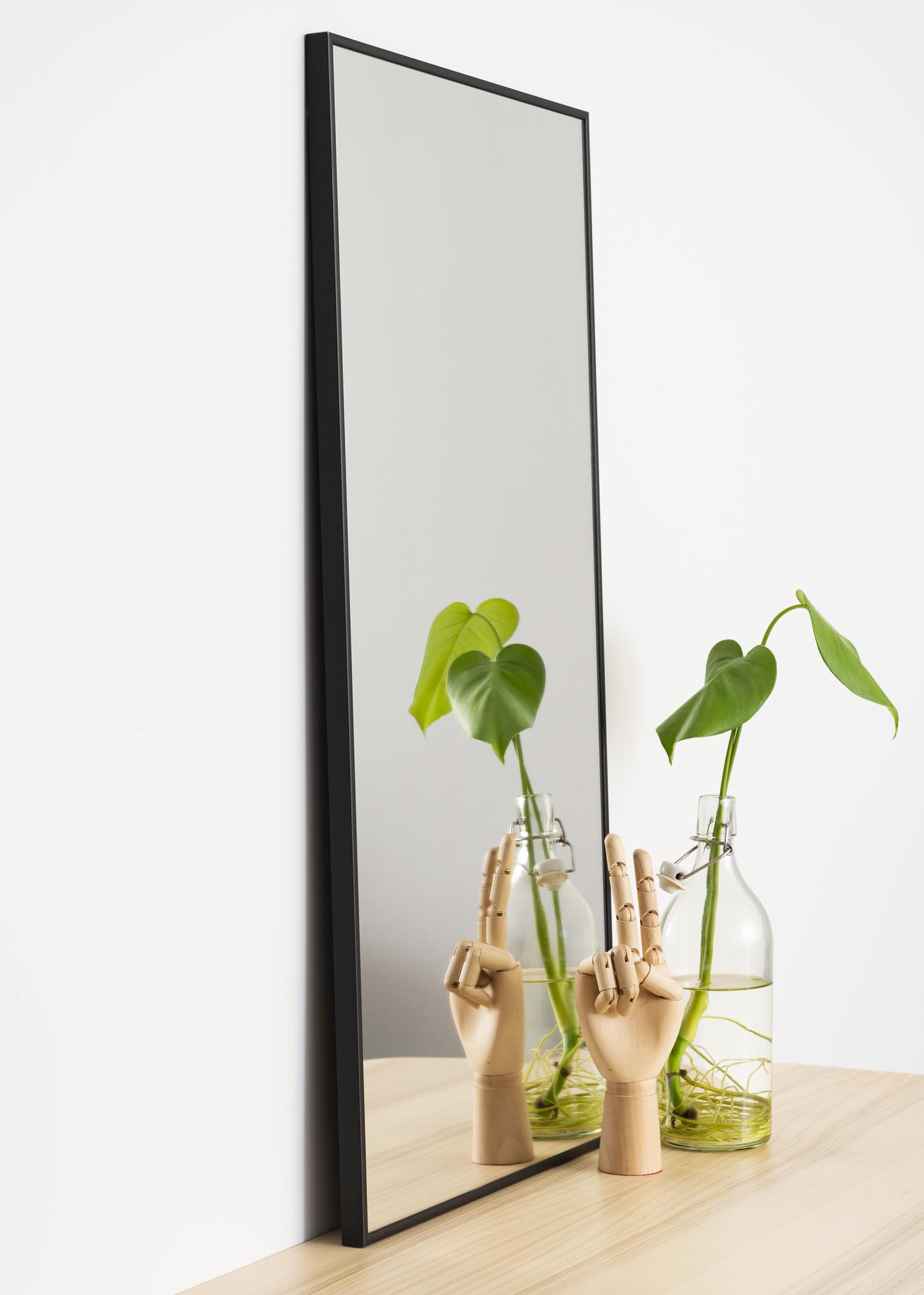 Lancer le sélecteur de cadres »Miroir classique avec cadre noir, qui s'accroche facilement au mur, grâce à des supports muraux judicieux.