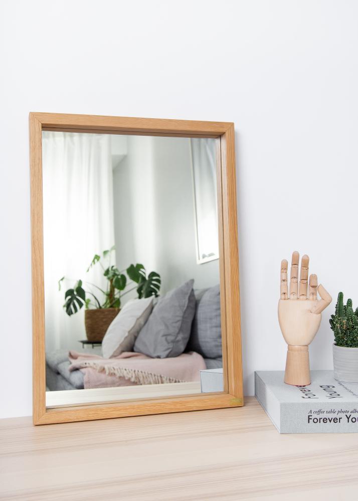 Un miroir rectangulaire avec cadre en chêne - un design simple et intemporel qui se révèle à la fois classique et moderne. Un miroir pour lequel il est facile de trouver un endroit approprié, dans n'importe quelle pièce et dans n'importe quelle maison.