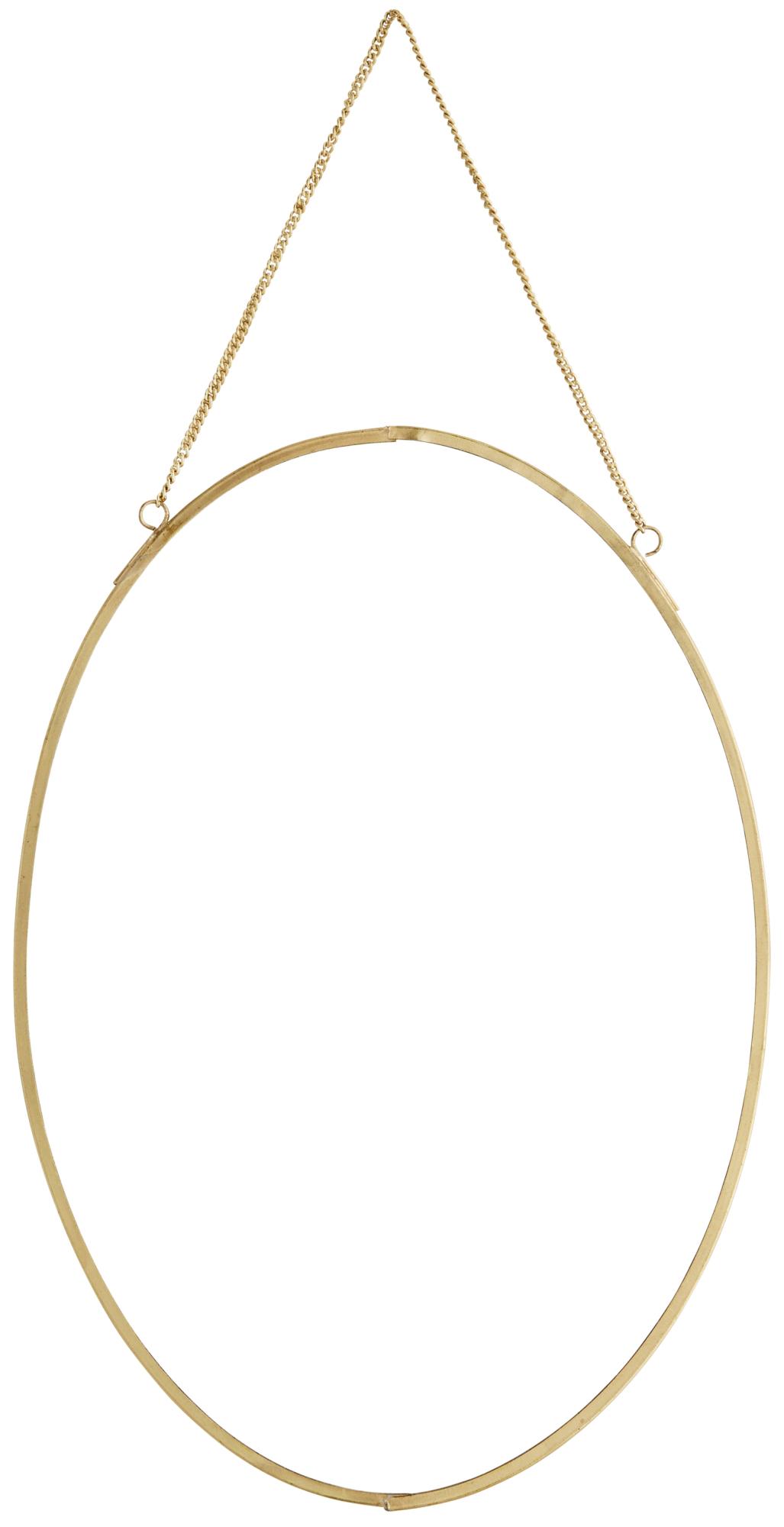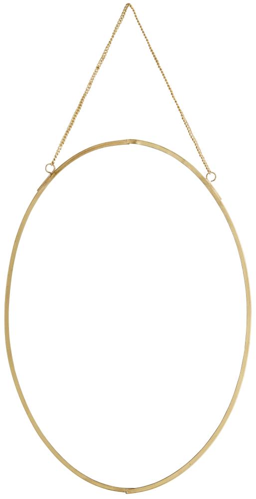 Miroir ovale de Madam Stoltz, avec cadre couleur laiton. Le miroir est suspendu avec une chaîne, également en laiton, ce qui lui donne une expression élégante supplémentaire qui convient parfaitement au salon et à la chambre. Le miroir mural mesure 21x30 cm. La taille délicate du miroir mural le rend très intéressant à assortir avec d'autres modèles de miroirs. Le miroir est fait à la main, ce qui signifie que chaque exemplaire peut varier légèrement en apparence.