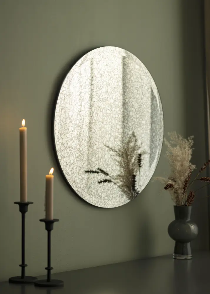 Ce chouette miroir, Prestige Oxidized en diamètre 60 cm, provient du danois Incado et il ne fait aucun doute qu'il est de design danois quand il est montré ici sous son meilleur jour. Avec le verre miroir à la teinte oxydée, le miroir procure une délicieuse sensation vintage qui est un peu irrégulier et usé.