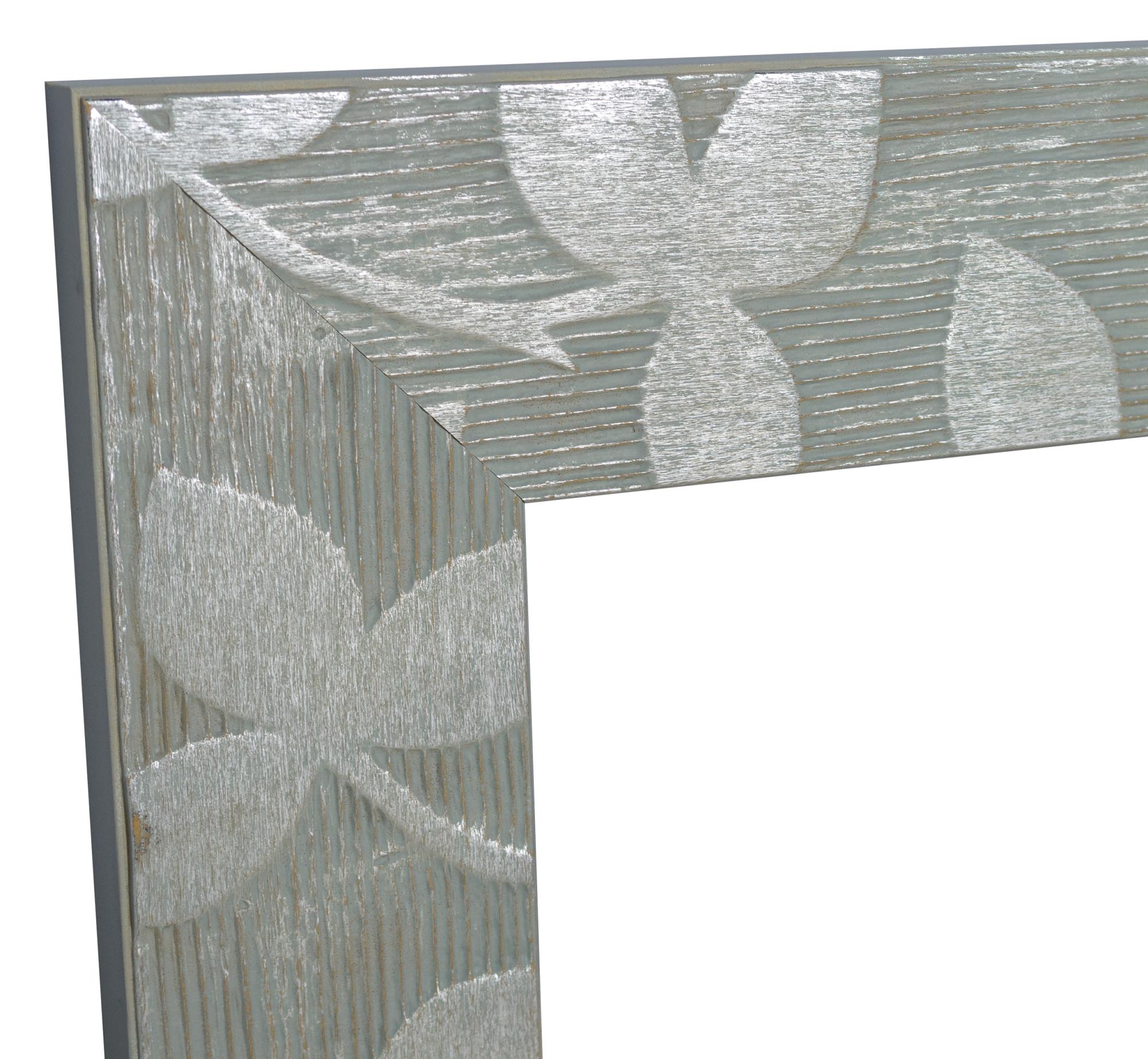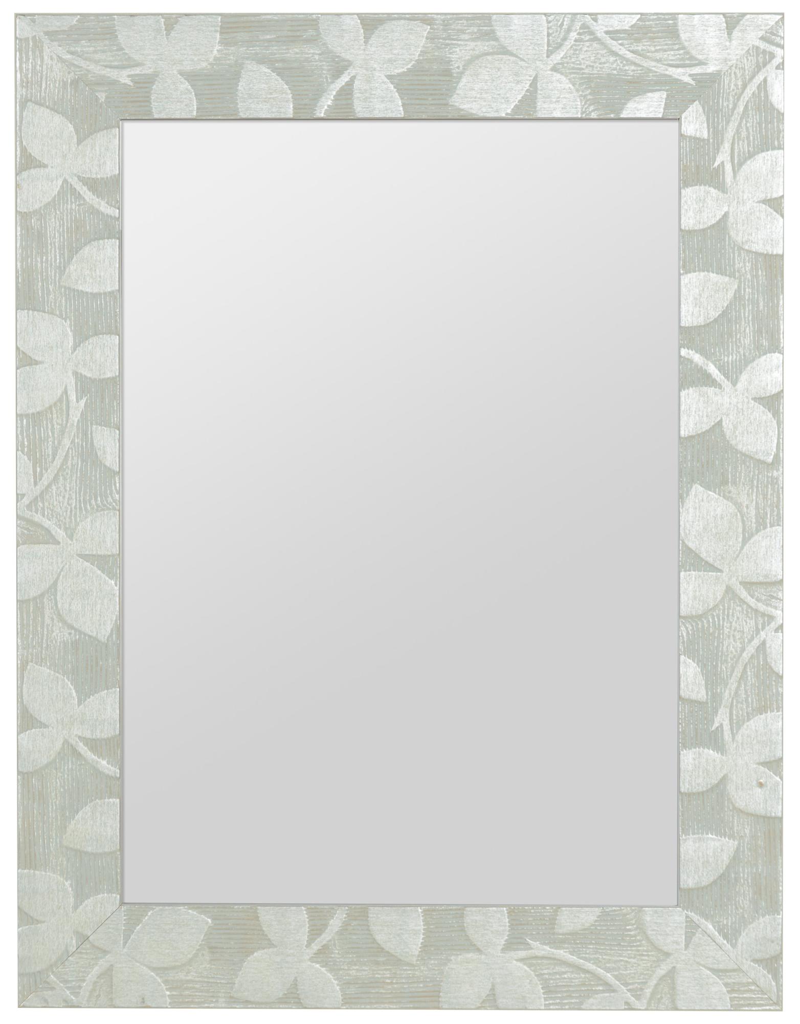 Décorez votre maison dans une palette de gris pour être sûr que les couleurs se correspondent. Ici, nous avons un miroir de très haute qualité qui se présente dans une attrayante teinte gris clair. Le cadre du miroir est en bois labellisé FSC avec une surface nervurée et un motif en feuillage décoratif. Le miroir est disponible dans des tailles adaptées aux miroirs de salle de bain et aux miroirs de hall d'entrée.
