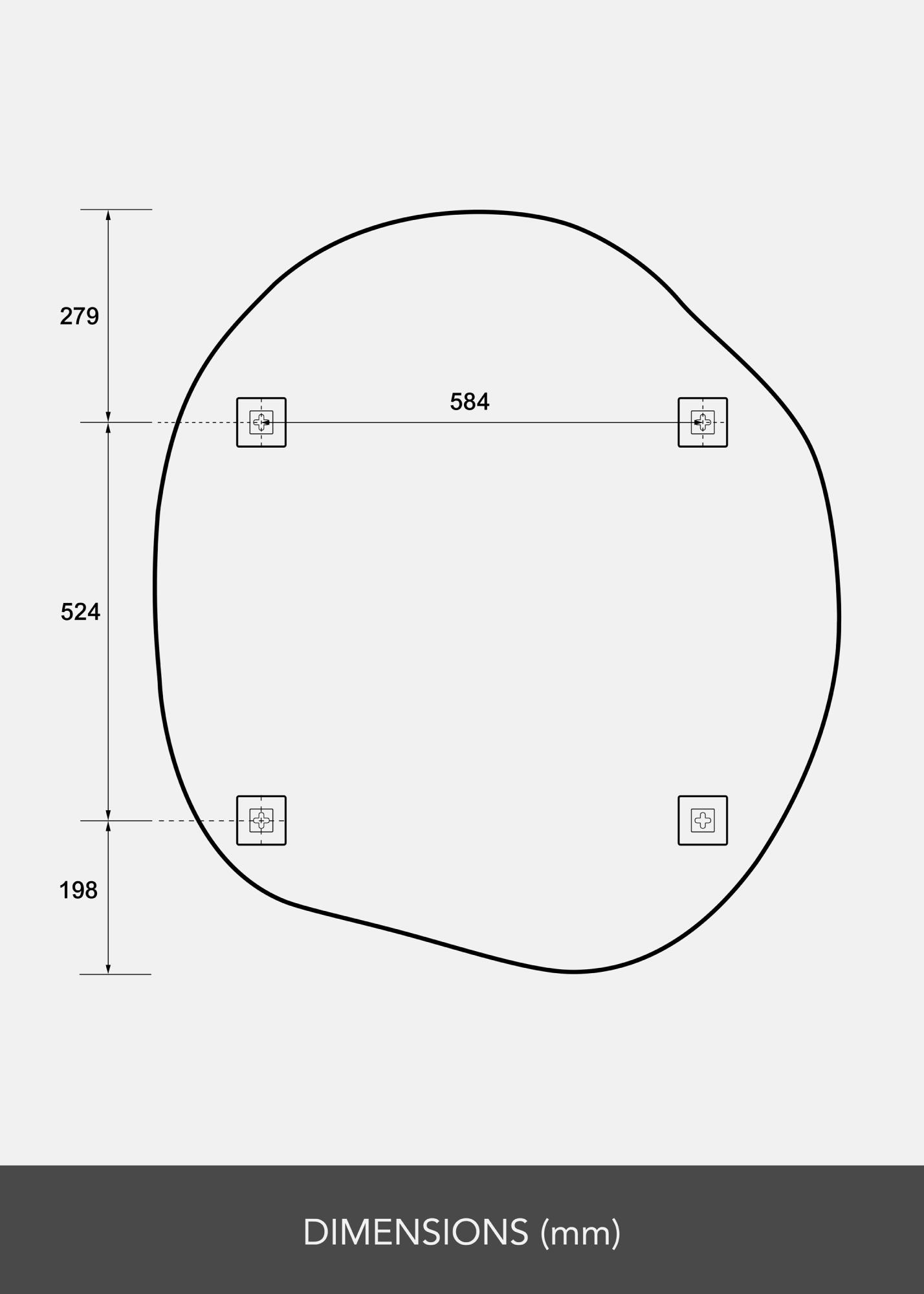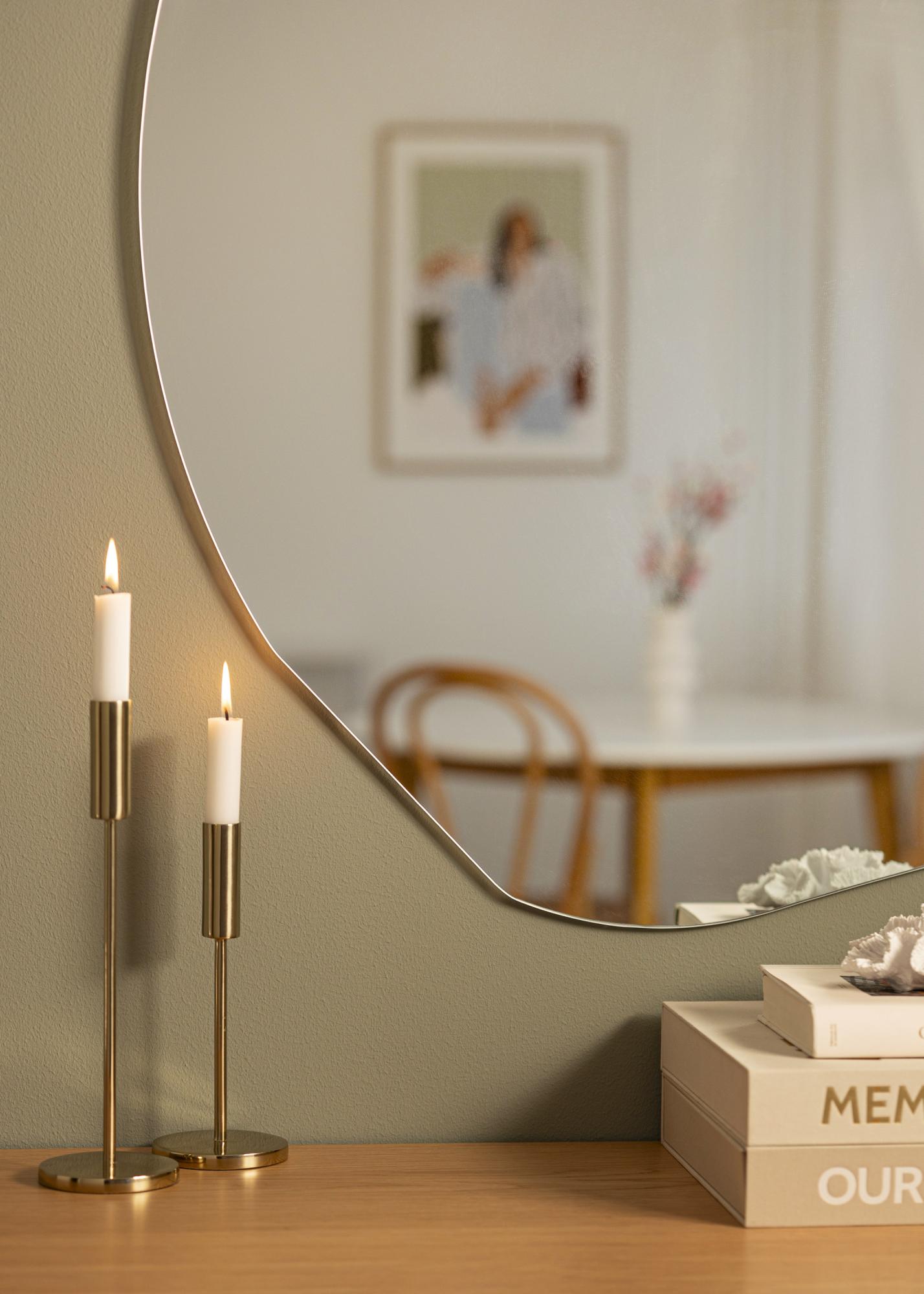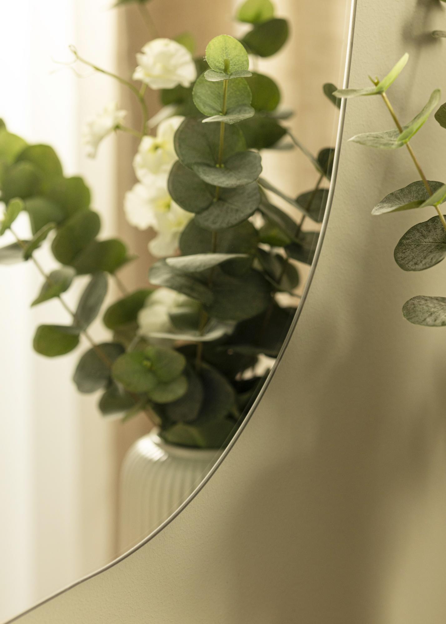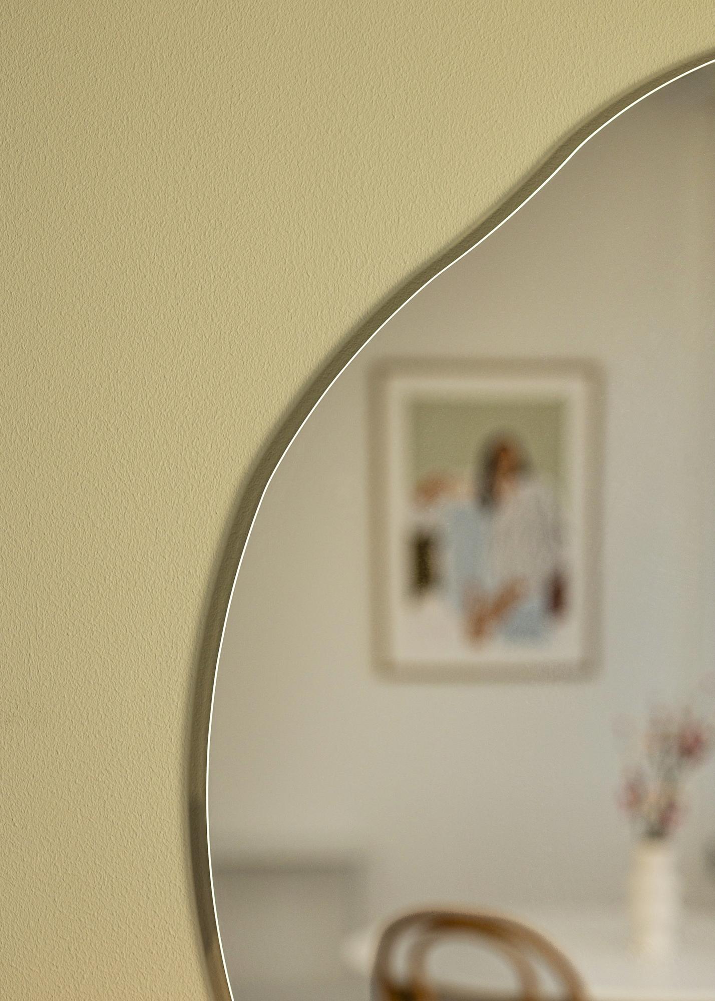 Le miroir a une forme arrondie, presque organique, avec des lignes douces et fluides qui créent une atmosphère détendue et accueillante. Ce design permet au miroir de devenir un point focal naturel dans la pièce et d'ajouter une touche d'élégance et de douceur à votre décoration.