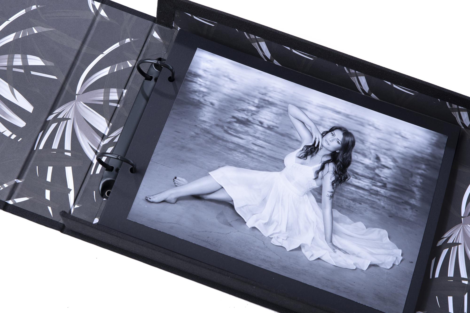 L'album est doté d'un classeur à anneaux et de 15 feuilles de carton noir sans acide (30 pages). Chaque page peut contenir une photo de format allant jusqu'à 15x20 cm.