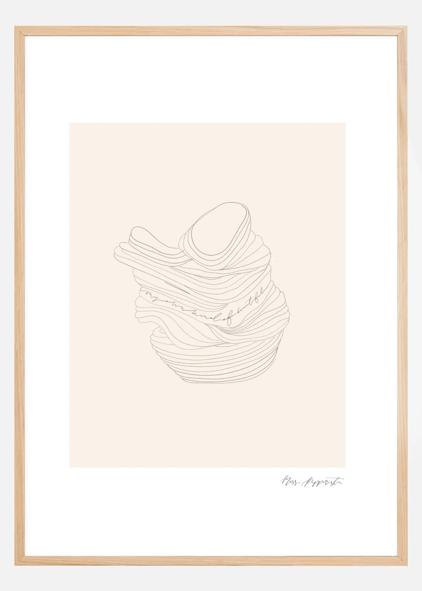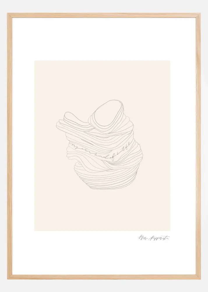 Une affiche intéressante d'objets empilés. Sur un fond beige, l'œil se dirige vers le bol nervuré de l'imprimé. Un poster idéal pour engager la conversation. Accrochez ce dessin dans votre salon pour découvrir ce que sont les objets empilés.