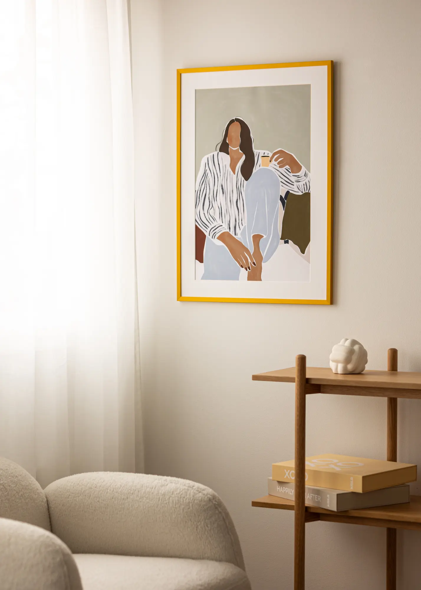 - Cadre en bois avec surface mate dans une teinte jaune vif