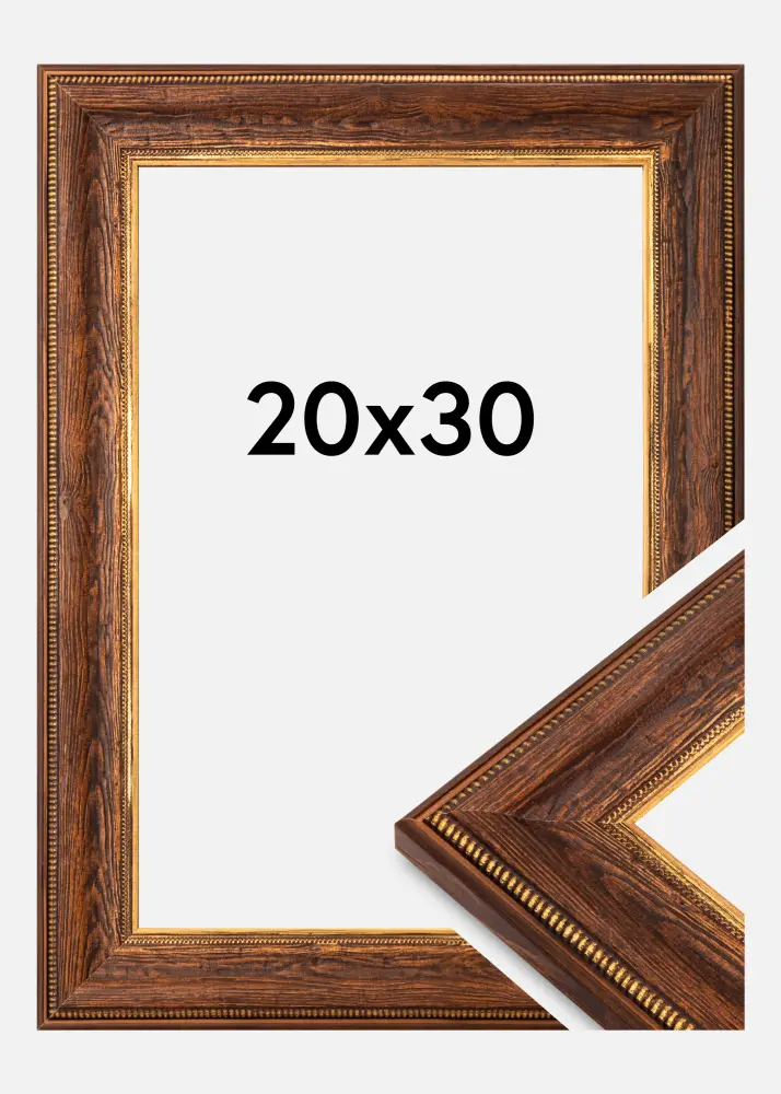 Ce cadre photo élégant de taille 20x30 cm est une parfaite combinaison de charme rustique et d'élégance classique. Fabriqué en bois de haute qualité, le cadre a une couleur brun foncé avec des détails décoratifs dorés le long du bord intérieur. La structure du bois est clairement visible et offre une sensation chaleureuse et naturelle, tandis que les accents dorés ajoutent une touche sophistiquée qui convient parfaitement aux intérieurs traditionnels et inspirés du vintage.