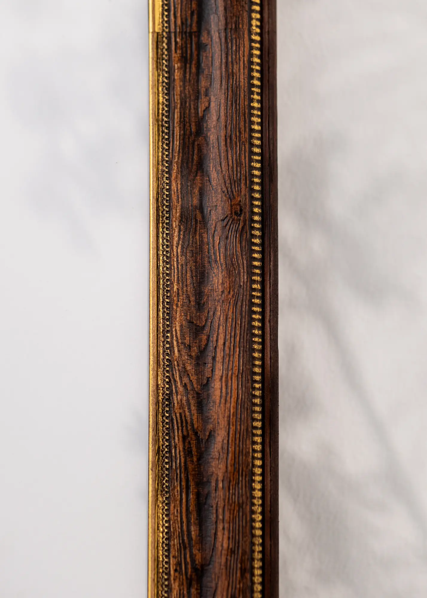 Cet élégant cadre photo de dimension 40x60 cm est une parfaite combinaison de charme rustique et d'élégance classique. Fabriqué en bois de haute qualité, le cadre a une couleur brun profond et chaud qui met en valeur la structure naturelle du bois. Les détails décoratifs dorés le long du bord intérieur ajoutent une touche sophistiquée qui complète à la fois les intérieurs traditionnels et inspirés du vintage.