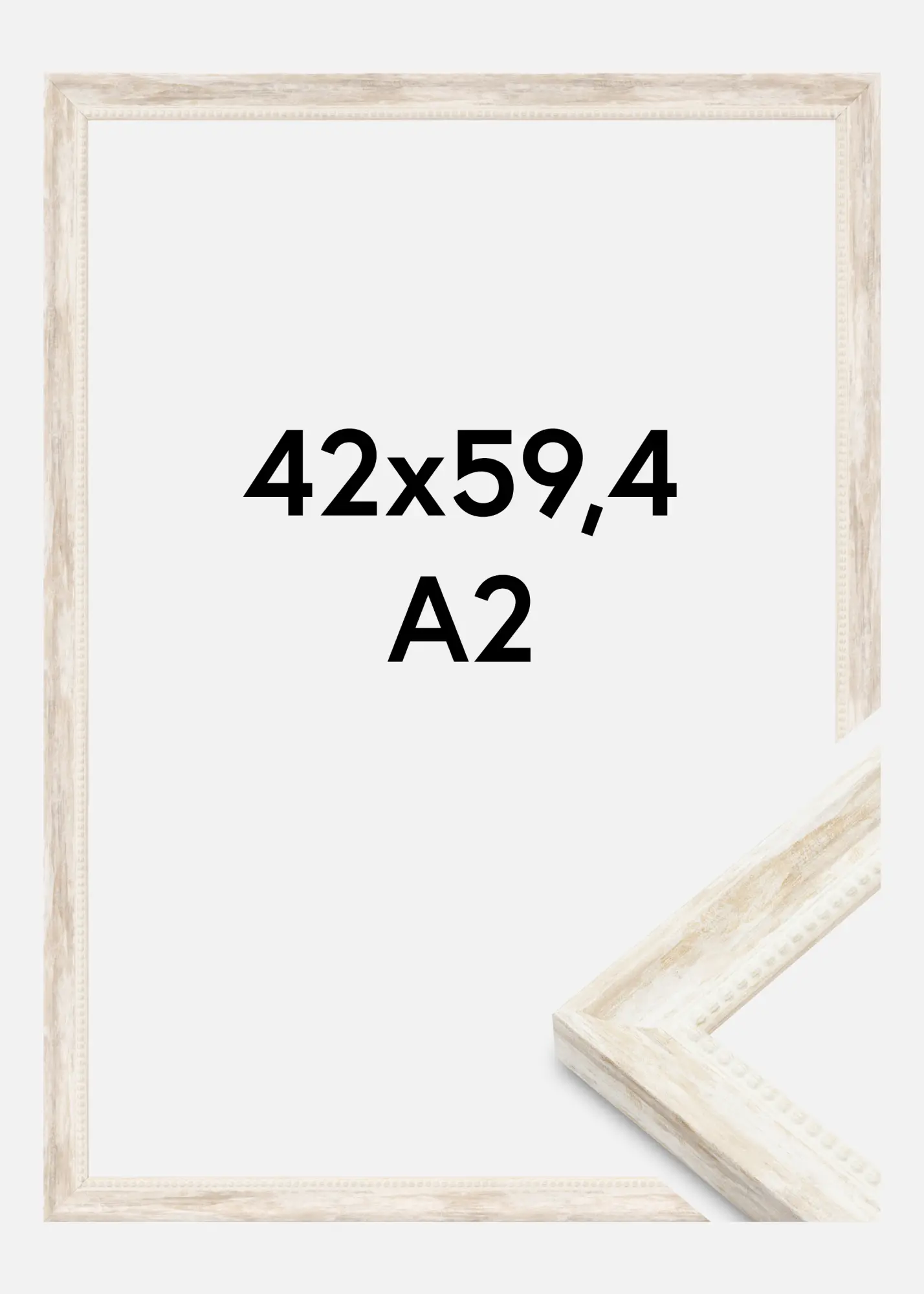 Découvrez un magnifique cadre photo de taille 42x59,4 cm qui allie élégance et charme rustique. Ce cadre blanc est fabriqué en bois et possède une sensation subtilement antique, rehaussée par une bordure perlée décorative le long de l'intérieur. Avec son design classique et riche en détails, il est parfait pour encadrer à la fois des œuvres d'art et des photographies, que vous ayez un intérieur moderne ou traditionnel.