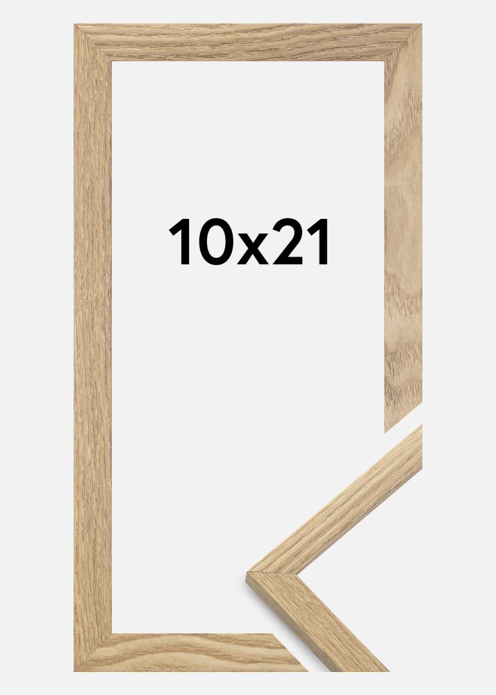 Le cadre, fabriqué en MDF avec placage en aluminium et une surface de couleur chêne est doté d'un mince profil de 14 mm. Il y a suffisamment d'espace pour combiner vos images avec un passe-partout luxueux, grâce à la profondeur intérieure du cadre (profondeur de baguette) de 12 mm.
