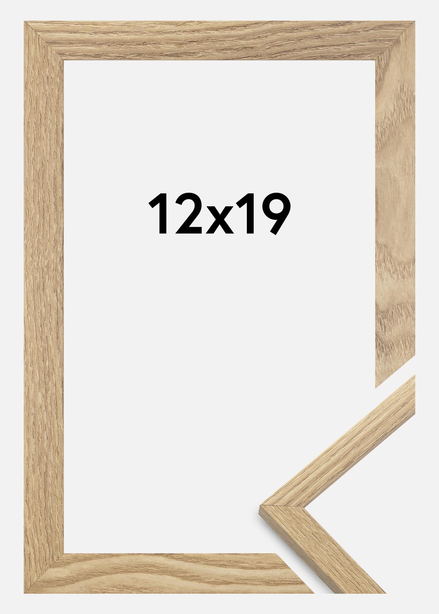 Le cadre, fabriqué en MDF avec placage en aluminium et une surface de couleur chêne est doté d'un mince profil de 14 mm. Il y a suffisamment d'espace pour combiner vos images avec un passe-partout luxueux, grâce à la profondeur intérieure du cadre (profondeur de baguette) de 12 mm.