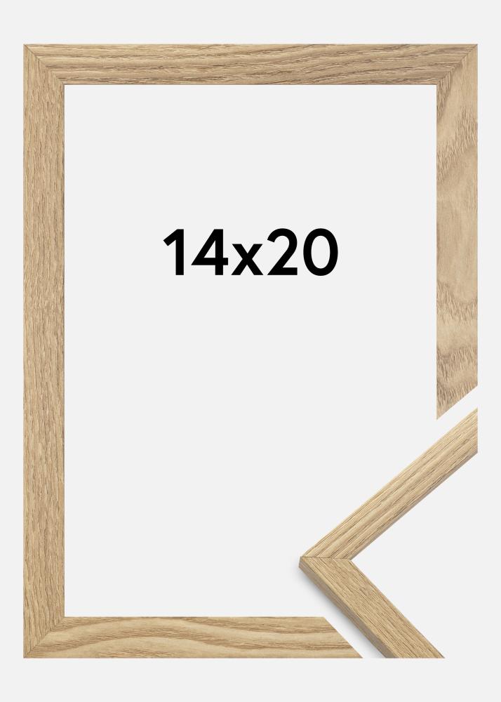 Le cadre, fabriqué en MDF avec placage en aluminium et une surface de couleur chêne est doté d'un mince profil de 14 mm. Il y a suffisamment d'espace pour combiner vos images avec un passe-partout luxueux, grâce à la profondeur intérieure du cadre (profondeur de baguette) de 12 mm.