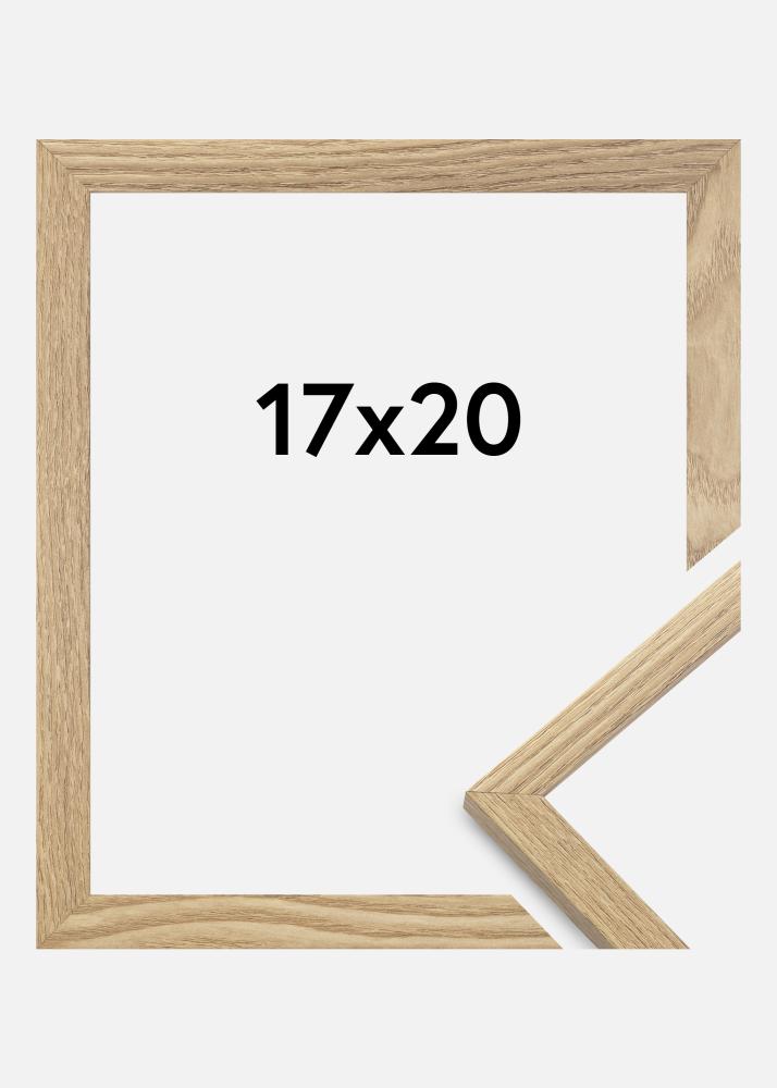Le cadre, fabriqué en MDF avec placage en aluminium et une surface de couleur chêne est doté d'un mince profil de 14 mm. Il y a suffisamment d'espace pour combiner vos images avec un passe-partout luxueux, grâce à la profondeur intérieure du cadre (profondeur de baguette) de 12 mm.