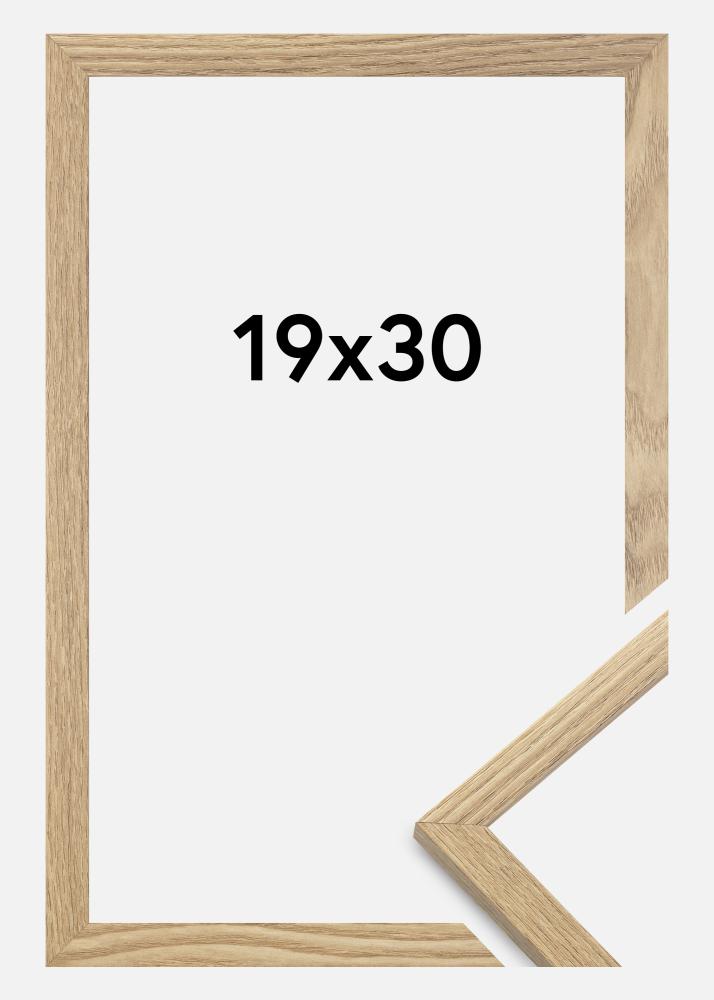 Le cadre, fabriqué en MDF avec placage en aluminium et une surface de couleur chêne est doté d'un mince profil de 14 mm. Il y a suffisamment d'espace pour combiner vos images avec un passe-partout luxueux, grâce à la profondeur intérieure du cadre (profondeur de baguette) de 12 mm.