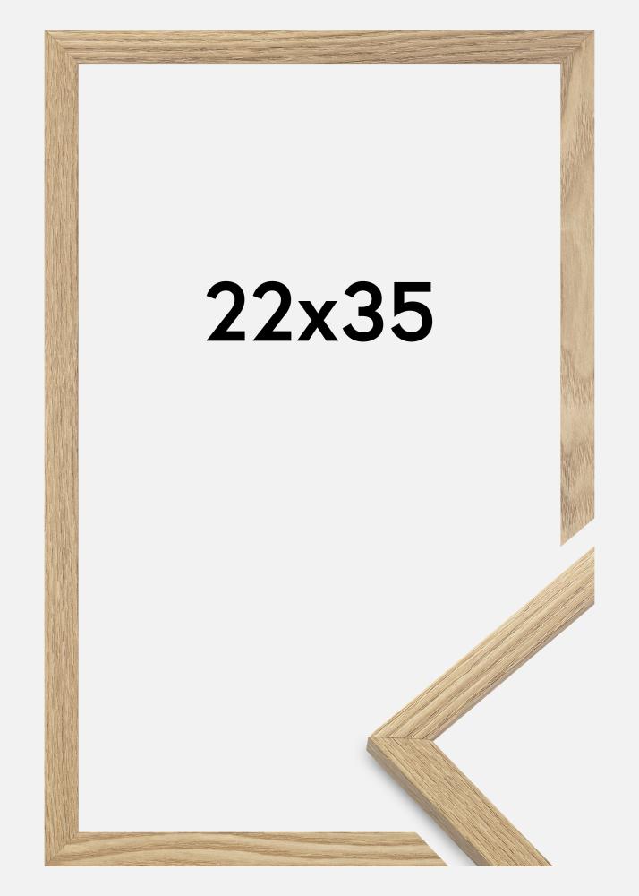 Le cadre, fabriqué en MDF avec placage en aluminium et une surface de couleur chêne est doté d'un mince profil de 14 mm. Il y a suffisamment d'espace pour combiner vos images avec un passe-partout luxueux, grâce à la profondeur intérieure du cadre (profondeur de baguette) de 12 mm.