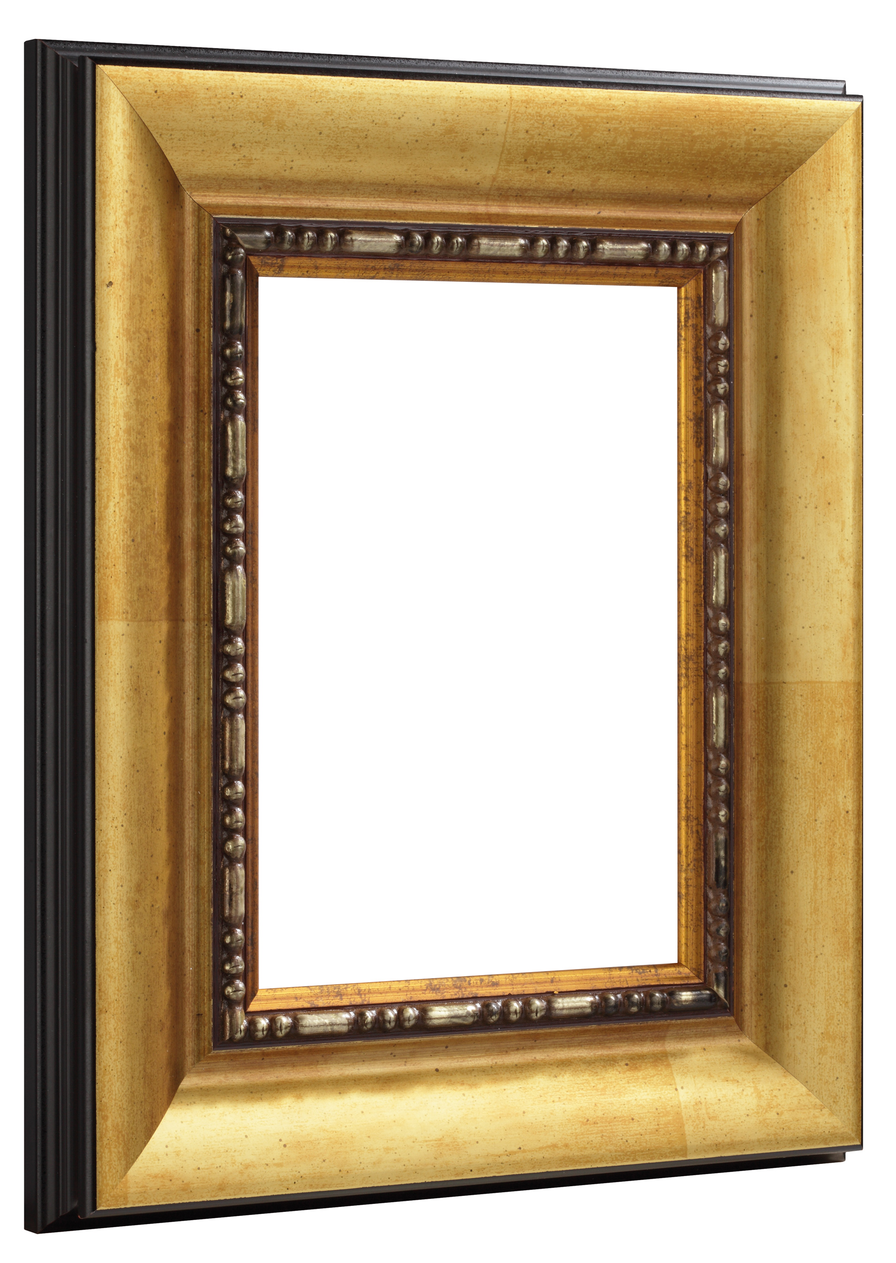 Cadre pour portrait classique pour les images que vous adorez. Le cadre a des côtés noirs avec une couleur or profilée sur le devant et des décorations au plus proche du motif.