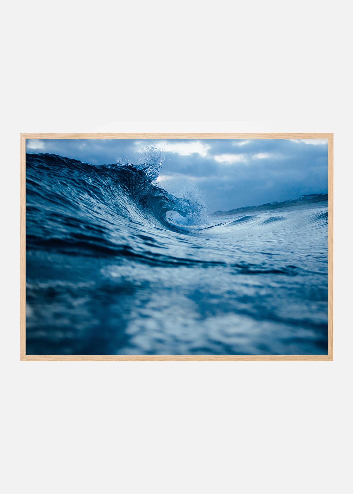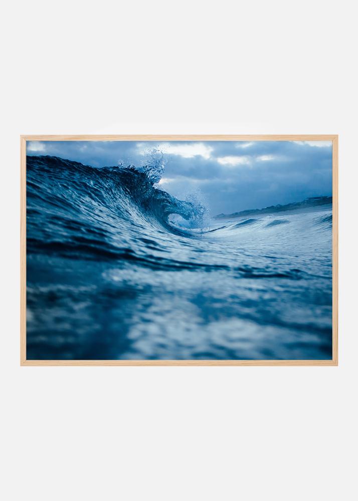 Si vous êtes toujours à la recherche de la vague parfaite, alors ce poster est pour vous. Une photographie pleine d'action entièrement dans des nuances froides de bleu d'une vague qui se brise à l'approche de la terre. Le poster est le cadeau parfait pour le passionné de surf et, complété par un cadre élégamment usé qui évoque le bois flotté, il s'intègre bien aussi dans la décoration d'une maison d'été.